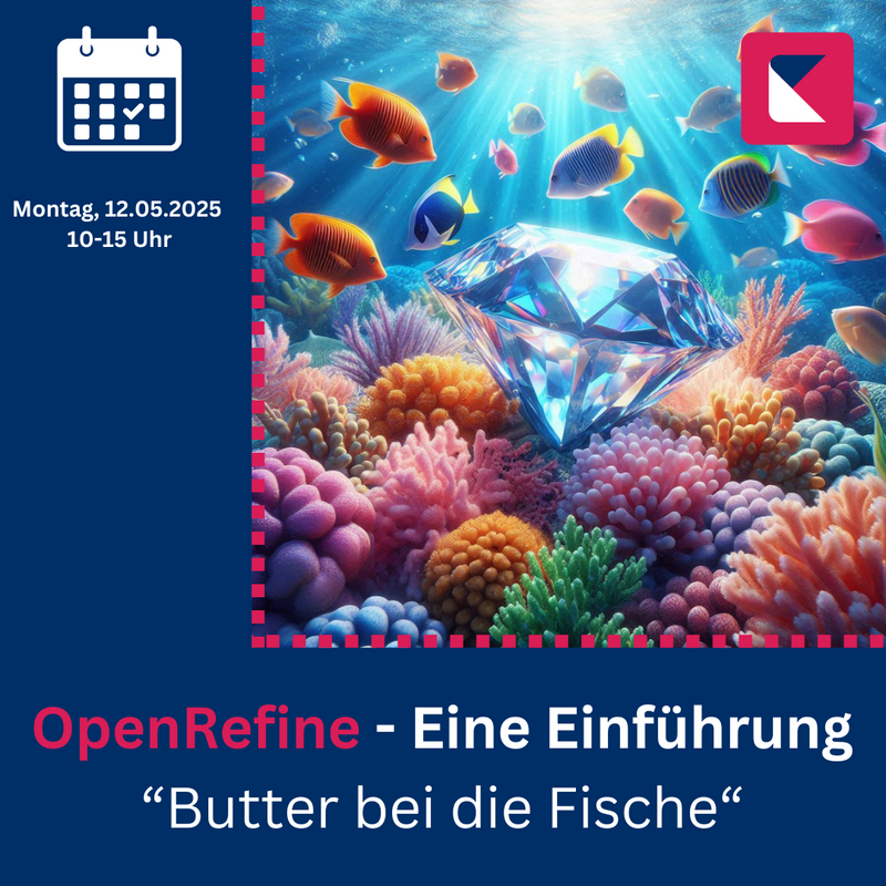 | | | | | Mit unserer neuen Workshop-Reihe "Butter bei die Fische" starten wir am 12. Mai 2025. Dabei haben Sie die Möglichkeit, das leistungsstarke und kostenlose Open-Source-Tool OpenRefine unter der Anleitung von Dr. Carsten Fortmann-Grote vom Max-Planck-Institut für Evolutionsbiologie in Plön (MPI Plön) kennenzulernen. OpenRefine ist ein vielseitiges Werkzeug für die Arbeit mit unstrukturierten Daten: Es ermöglicht die Bereinigung, Transformation in verschiedene Formate, Anreicherung mit externen (Norm-) Daten und vieles mehr. Wer vorab einen Blick auf OpenRefine werfen möchte, wird hier fündig: OpenRefine. Weitere Details erhalten Sie nach der Anmeldung. Der Workshop richtet sich an Einsteigerinnen und Einsteiger ohne Vorkenntnisse. Die Veranstaltung findet in Präsenz in den Räumlichkeiten der SHLB statt. Bitte beachten Sie, dass jeder Teilnehmende einen eigenen Laptop mitzubringen muss! Die Anzahl der Teilnehmenden ist auf 10 Personen beschränkt. Bei Überbuchung wird eine Warteliste eingerichtet. Wir freuen uns auf Ihre Teilnahme! Workshop-Leitung: Dr. Carsten Fortmann-Grote (MPI Plön) und Nadine Alpino (SHLB) Teilnahme: kostenfrei Zeit und Ort: Montag, den 12. Mai 2025, 10:00-15:00 Uhr in der SHLB Anmeldung: per E-Mail bis zum 28. April 2025 um 12 Uhr an: Datenmanagement@shlb.landsh.de; Betreff: SHLB-Workshop "OpenRefine“ Es handelt sich um eine Kooperationsveranstaltung der AG Kompetenzentwicklung der schleswig-holsteinischen Landesinitiative zum Forschungsdatenmanagement (FDM-SH). | | | | | | |
