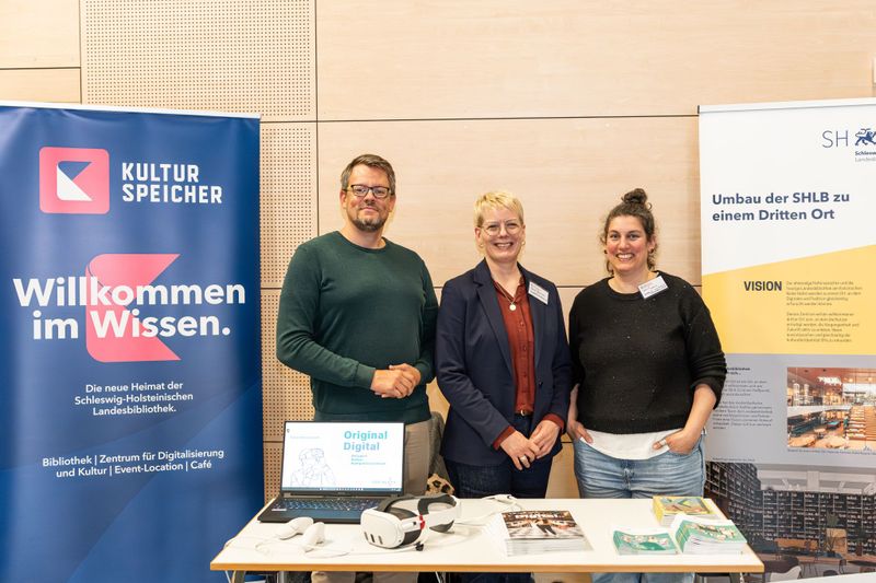 | | | | | Am vergangenen Dienstag, den 25. März 2025, waren Berit Johannsen und Nadine Alpino mit der Unterstützung von Manno Ludzuweit (Dataport AöR) bei der Eröffnung des DLC SEE-digital des Digital Learning Campus (DLC) an der Fachhochschule Kiel (FH Kiel) und haben die SHLB vorgestellt. Was ist der DLC? Der DLC bietet die Möglichkeit, sich kostenlos, sowohl online als auch in Präsenz über Angebote im ganzen Land zu Zukunftsthemen wie: Künstliche Intelligenz Zukunftstechnologien und Innovation Rund um Informatik Digitale Kulturen, Kunst & Design Social & Media Nachhaltige Entwicklung zu informieren und Wissen zu erwerben. Neugierig geworden? Schauen Sie einfach mal in die Angebote. Diese sind hier zu finden: DLC Und wer sich wundert, was wir damit zu tun haben? Wir sind Kooperationspartner der FH Kiel, die wiederum Konsortiumspartner beim DLC-Projekt ist. Das heißt, demnächst werden auch unsere Veranstaltungen auf der Seite des DLCs zu finden sein. Auf das die neugestaltete SHLB voll werde. | | | | | | |