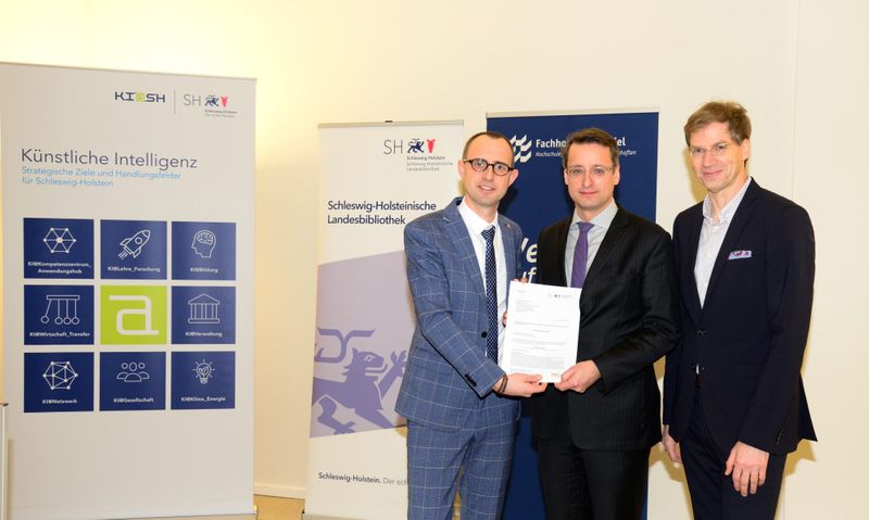 | | | | | Digitalisierung und Kultur rücken noch weiter zusammen: In einem Projekt der Fachhochschule (FH) Kiel und der Landesbibliothek werden jetzt die Chancen und Risiken der Anwendung von Künstlicher Intelligenz (KI) in der Kultur erforscht. Der Chef der Staatskanzlei, Staatssekretär Dirk Schrödter, überreichte am 12. Februar einen Förderbescheid über 245.000 Euro an Vertreterinnen und Vertreter der FH Kiel und der Landesbibliothek. Sie erforschen und entwickeln in dem Projekt „KI und Kultur“ Anwendungsmöglichkeiten für Künstliche Intelligenz in Einrichtungen der kulturellen Infrastruktur. „Wir setzen unseren KI-Handlungsrahmen Stück für Stück um und forcieren den Einsatz von Künstlicher Intelligenz in allen Lebensbereichen. Künstliche Intelligenz kann auch einen wichtigen Beitrag zu einer zukunftsfähigen kulturellen Infrastruktur und kulturellen Bildung leisten. Unsere Landesbibliothek als digitaler Knotenpunkt ist dafür der richtige Ort: Die Entwicklung der Digitalisierung braucht Räume zum Ausprobieren, zum Erleben und zum Erfahren“ sagte Staatssekretär Dirk Schrödter. Das Land habe für Projekte und Initiativen im Bereich der Künstlichen Intelligenz ein Sondervermögen von zunächst 4,5 Millionen Euro bereitgestellt. Wie Schrödter weiter sagte, soll es im Rahmen eines Nachtragshaushaltes um weitere zehn Millionen Euro aufgestockt werden. „Schleswig-Holstein macht weiter Tempo im Bereich der Künstlichen Intelligenz. In diesem Jahr geht es darum, Projekte auf den Weg zu bringen, mit denen die strategischen Ziele zu Künstlicher Intelligenz mit Leben gefüllt werden. Auch die Landesbibliothek wird ein Ort, um Neues zu entdecken“, so Schrödter. Schleswig-Holstein hat auch eine eigene KI-Strategie entwickelt, die auf der Seite des Landes abrufbar ist. Um was es bei KI genau geht, erfahrt ihr bei dem finnischen Onlinekurs Elements of AI, der gemeinsam mit den Industrie- und Handelskammern für den deutschen Sprachraum bereitgestellt wird. Das Goldsmith College in London hat eine Art Instrumentenkasten zu KI-Anwendungen im Museum veröffentlicht, die hier heruntergeladen werden können. Auch die Bundesrgeirung findet übrigens, dass das Thema KI und Kunst mehr Aufmerksamkeit verdient hat. | | | | | | |