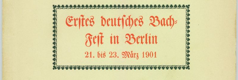 | | | | | | Titelblatt: Erstes deutsches Bachfest in Berlin, 21. bis 23. März 1901 | | | | | | |