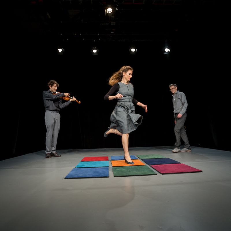 | | | | | | ©Till Budde | | | | Klangquadrat (2-10) Sa 21. + So 22.03. | jeweils 16 Uhr | Ticket-Shop Mo 23.03. | 10 Uhr | AUSVERKAUFT Theater o.N. | Kollwitzstr. 53, 10405 Berlin Wie kann man Musik sichtbar machen? Diese Frage stellten sich die Komponisten und Musiker Florian Bergmann und Benedikt Bindewald und die Spielerin Minouche Petrusch und sie erfanden ein Klangquadrat aus 3x3 Tönen. Auf diesem lässt sich spielen und musizieren, singen und tanzen. Folgt man den Tönen auf den Feldern, entstehen Choreografien der musizierenden Körper im Raum, sinnlich und lustig, strengen Regeln folgend und dabei immer wieder überraschend. Manchmal müssen die drei Spieler*innen sich akrobatisch verrenken, um ihre Töne zu treffen. Manchmal sind drei einer zu viel. Und der Volkslied-Kanon »Heut kommt der Hans zu mir« wird zum schwindelerregenden Walzer, bei dem am Ende keiner mehr weiß, wer eigentlich zu wem gehört. | | | | | | | | |
