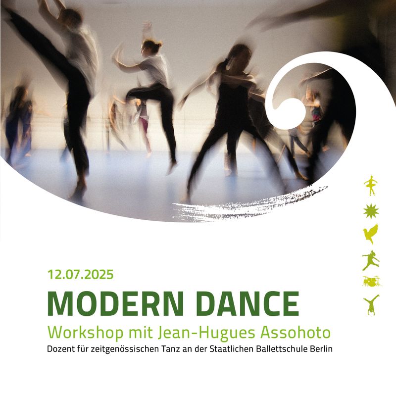 | | | | | MODERN DANCE WORKSHOP am 12.7.2025 in Stralsund mit Jean-Hugues Assohoto --> Anmeldeformular Anmeldeschluss: 01.07.2025 | | | | | | | | |