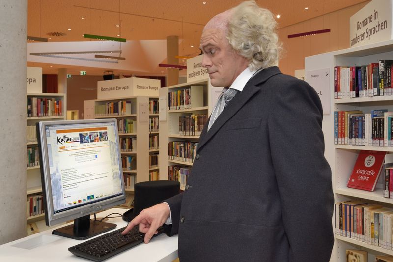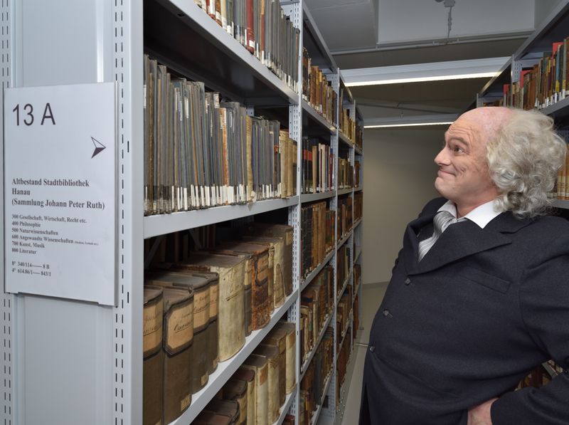 | | | | | „Es ist kaum zu fassen. Als „Beförderer gemeinnütziger Unternehmungen“ habe ich vor 175 Jahren meine Sammlung von Büchern der Stadt insbesondere für die öffentliche Bibliothek zum Eigentum überlassen. Und jetzt stehe ich hier vor diesem riesigen Gebäude. Und auch mein Hanauer Geschichtsverein ist dort untergebracht, beim Stadtarchiv und der Wetterauischen Gesellschaft. Wohlgetan, Stadt Hanau. Ihr ehrt meine Idee und habt verstanden, dass jeder Bürger und jede Bürgerin jederzeit Zugang zu Wissen und Bildung haben muss." Am 6. Juni 1846 wurde die Stadtbibliothek am Johanneskirchplatz eröffnet. Seither ist sie mehrfach umgezogen und weitergewachsen. Die längste Zeitspanne war sie im Kanzleigebäude am Schlossplatz untergebracht, von 1949 bis 2015. Seit dem 10. September 2015 ist sie Teil des Kulturforums am Freiheitsplatz. | | | | | | |