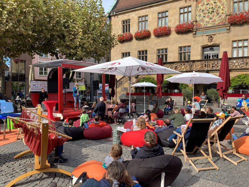 Der Heilbronner Marktplatz wird zum gemütlichen Lesewohnzimmer. Dazu finden Lesungen für Erwachsene und Kinder statt.