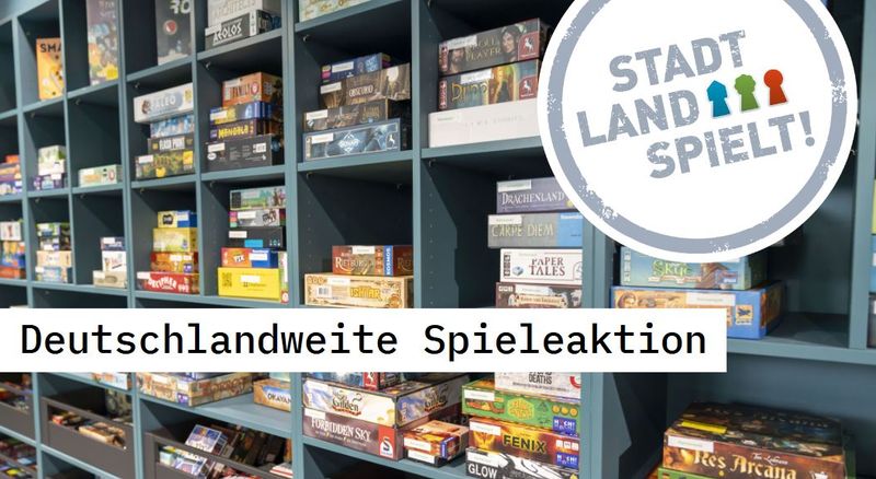 | Stadt-Land-Spielt! – Deutschlandweite Spieleaktion Sa / 20.09. / 11 - 15 Uhr / Stadtbibliothek im K3 Am Tag des Gesellschaftsspiels wird das Podium der Stadtbibliothek zu einer großen Spielearena. Groß und Klein sind willkommen. Das Spieleteam hilft bei der Auswahl eines Spiels und unterstützt beim Erlernen der Spielregeln. Mehr lesen | | | |