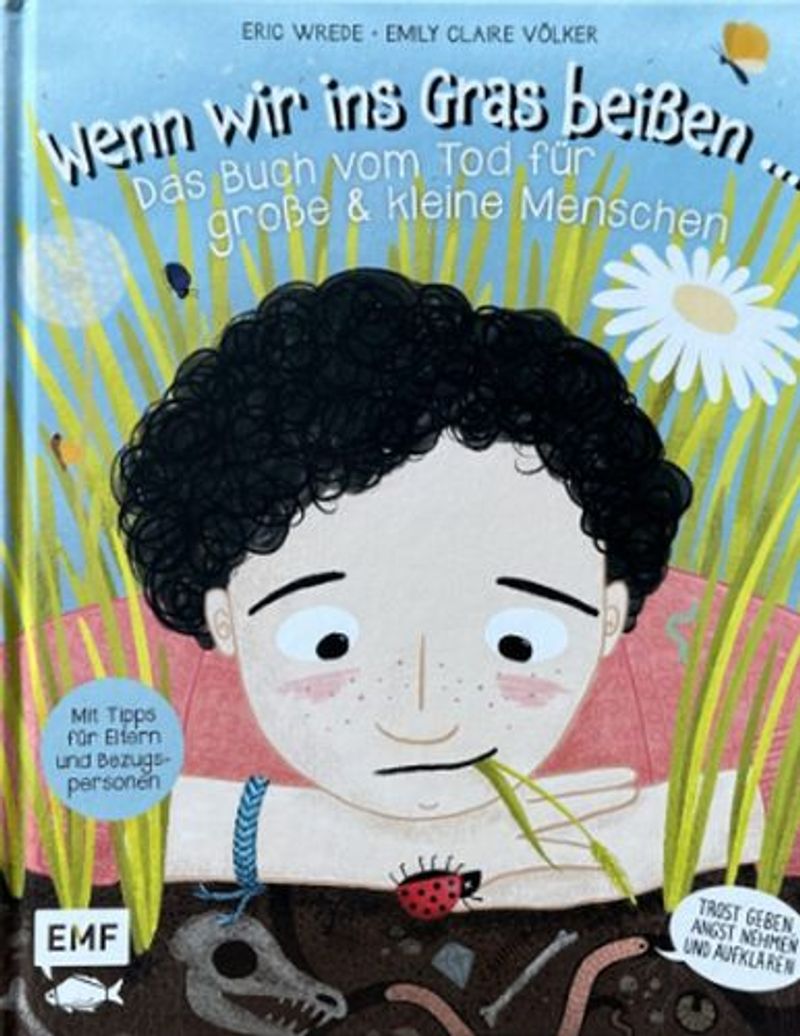 | Wenn wir ins Gras beißen : das Buch vom Tod für große & kleine Menschen / Eric Wrede. Edition Michael Fischer 2024 Warum müssen wir sterben? Was passiert mit dem Körper nach dem Tod? Welche Bestattungsformen gibt es? Der Tod ist für viele Kinder schwer zu verstehen und Erwachsenen fehlen oft die passenden Worte, um darüber zu sprechen. Dieses Buch möchte dabei helfen, Fragen kindgerecht zu beantworten. | | | | | |