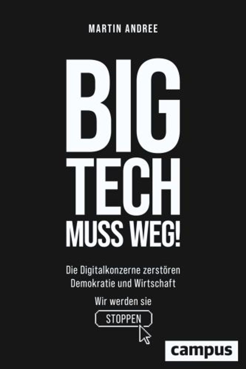 | Big Tech muss weg! : die Digitalkonzerne zerstören Demokratie und Wirtschaft : wir werden sie stoppen / Martin Andree. Campus Verlag 2023. Auch als eBook Martin Andree analysiert die Machtkonzentration von Tech-Giganten, die Demokratie und Marktwirtschaft bedroht, zeigt die feindliche Übernahme des Internets auf und ruft zu Gegenmaßnahmen auf, um digitale Freiheit und demokratische Kontrolle zurückzugewinnen. | | | | | |