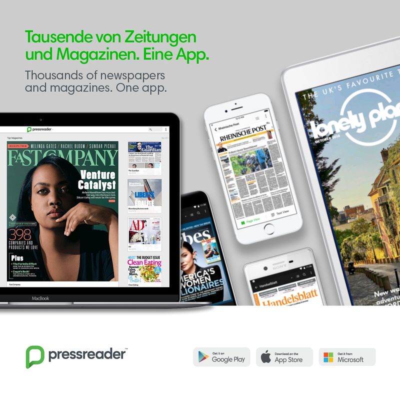 | PressReader bietet mit dem Bibliotheksausweis kostenlosen Zugang zu circa 8.000 Zeitungen, Magazinen und Zeitschriften aus aller Welt – sowohl in der Bibliothek als auch unterwegs. Tagesaktuelle Zeitungen und Zeitschriften aus 100 Ländern in über 60 Sprachen können online gelesen werden, häufig noch bevor die Print-Ausgabe erscheint. Das Archiv reicht bis zu 90 Tage zurück und neue Titel werden automatisch freigeschaltet. Erfahren Sie in einem Video-Tutorial, wie Sie PressReader nutzen können | | | |