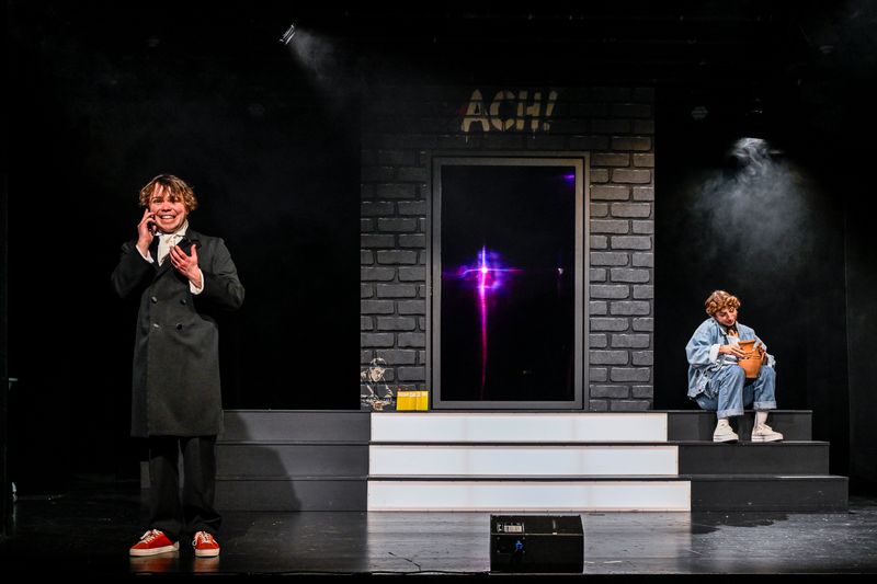| | | | | 1. Ihr erzählt Kleists Werk in ganz unterschiedlichen Variationen (als Instagram-Video, mit Playmobil-Figuren, als Song). Welche Form hat Euch besonders herausgefordert und welche hat am meisten Spaß gemacht? Michaela: Am herausforderndsten war für mich, die Erzählung des Zerbrochnen Krugs mittels der „Verbrechensaufklärung“. Der schnelle Switch zwischen den verschiedenen Kleist-Figuren und der Moderatorin-Ebene war bei dem rasanten Tempo, gar nicht so leicht. Da hat es uns schon ziemlich oft beim Proben aus der Bahn geworfen. Aber gleichzeitig machen solche Herausforderungen, wenns dann wirklich Klipp-Klapp geht und läuft, unglaublich Spaß und bieten ne tolle Möglichkeit, mit den KollegInnen im Spiel gemeinsam Momente neu voneinander abzunehmen. Besonders gerne mochte ich die Arbeit mit Magdalena Wurm, die die Choreografie für unseren Rap erarbeitet hat. Ich tanze unglaublich gerne und als es dann hieß, wir holen jemanden, damit es auch wirklich toll aussieht, war ich ziemlich happy. Nicky: Die Songs waren für mich eine besondere Herausforderung, weil sie extra für uns geschrieben wurden und es keine Partituren dazu gab. Obwohl wir ja in erster Linie Schauspielerinnen und keine Sängerinnen sind, hat mir das Singen total Spaß gemacht – ich merke, dass es mir einfach guttut. Es war uns wichtig, eine Form zu finden, die für verschiedene Altersgruppen funktioniert. Also mussten wir ständig abwägen: Was ist zu viel? Was ist zu wenig? Wo sollten wir stärker reingehen und wo lieber nicht? Am meisten gefreut hat mich aber etwas anderes: In der ersten Fassung, die wir bekommen haben, gab es etwa eine bis anderthalb Seiten Text rund um die Figur Trump – ein kompletter Auftritt, der vor allem aus inhaltlosem Gerede bestehen sollte. Nach einer Probe habe ich deshalb meine Meinung geäußert und gesagt, dass ich es schwierig finde, das so stehen zu lassen. Draufhin wurde dieser Teil überarbeitet und schließlich gestrichen. Heute, wenn ich auf der Bühne stehe und diesen Moment unterbreche und sage: „Nein, das können wir so nicht machen“, spüre ich auch im Publikum eine Reaktion. Anfangs wird gelacht – und dann merken viele: Stimmt, das ist kein Witz. Gerade weil es bei Kleist auch um Themen wie Krieg und das Werden junger Soldaten geht, fühlt es sich für mich richtig an, diese Auseinandersetzung in unser Stück mitzunehmen. Und genau das hat mir an dieser Stelle wirklich Spaß gemacht. Julian: Obwohl oder gerade weil wir noch verhältnismäßig nah am Alter des Zielpublikums dran sind, war es natürlich der Anspruch nicht anbiedernd rüber zukommen. Gerade so etwas wie Rapeinlagen oder ein Kleiststück als TikTok Version, wie wir es im Stück haben, kann da schnell Panne wirken. Aber ich finde wir haben einen guten Weg gefunden, damit umzugehen und vieles auch augenzwinkernd zu sehen. Mein persönliches Highlight war Amphitryon als Playmobilversion zu performen, denn diese verrückte Form passt perfekt zur Absurdität der Geschichte. Besonders Spaß bereitet haben mir aber auch die etwas ernsteren und tragischeren Werke wie Penthesilea oder Familie Schroffenstein, da die Spielform hier auch eine Abwechslung bietet, wenn man, wie es im jungen Theater häufig vorkommt oft Märchenfiguren spielt und im Gegensatz hier nochmal ganz andere Facetten zeigen kann. | | | | | | |