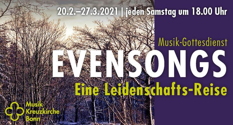 | Nachdem wir die stillen jecken Tage in diesem Jahr hinter uns gelassen haben, beginnen wir nun ab morgen, Samstag, 20. Februar 2021 die Fastenzeit mit einem neuen Musikgottesdienst-Format: EVENSONGS heißt die Reihe der kommenden sechs Samstagabend-Gottesdienste, die um 18 Uhr in der Kreuzkirche stattfinden werden. Angelehnt an die musikalischen Vespern aus England begeben wir uns auf eine Leidenschafts-Reise durch die Passionszeit. Die Themen der sechs Evensongs – Angst, Wut, Verleugnung, Klagen, Abschied und Trauer – entwickeln sich inhaltlich anhand der einzelnen Stationen der Traumabewältigung. Die Passionsgeschichte von Jesus ist eine leidenschaftliche Leidensreise, die sich in die Tiefen der menschlichen Emotionen im Angesicht von großem Unglück begibt. Die Liturgie übernehmen die Superintent*innen der drei Bonner Kirchenkreise, Dietmar Pistorius (Kirchenkreis Bonn), Almut van Niekerk (Kirchenkreis An Sieg und Rhein) und Mathias Mölleken (Kirchenkreis Bad Godesberg-Voreifel) sowie die Pfarrer*innen Ebba Kompa und Tobias Mölleken. Karin Freist-Wissing und Stefan Horz haben die musikalische Leitung. Hier finden Sie auf YouTube ein Gespräch über die EVENSONGS zwischen unserer Musikvermittlerin Dorothee Pahnke und den Initiatoren - Karin Freist-Wissing, Stefan Horz & Pfarrer Tobias Mölleken. Dies sind die Termine: 20. Februar um 18.00 Uhr ANGST Liturg: Dietmar Pistorius, Musik: Stefan Horz (Orgel) 27. Februar um 18.00 Uhr WUT Liturg: Tobias Mölleken, Musik: Stefan Horz (Klavier & Synthesizer), Tobias Mölleken (Cajon) 6. März um 18.00 Uhr VERLEUGNUNG Liturgin: Almut van Niekerk, Musik: Karin Freist-Wissing, Solisten von VOX BONA, Stefan Horz (Orgel) J.S. Bach „Ich will hier bei dir stehen“ und „Bin ich gleich von dir gewichen“; Bach/Sandström „Gute Nacht O Wesen“; John Rutter „The Lord bless you and keep you“ 13. März um 18.00 Uhr KLAGEN Liturgin: Ebba Kompa, Musik: Karin Freist-Wissing, Sopran und Alt aus VOX BONA, Streichquintett aus dem Orchester Auszüge aus G. B. Pergolesi „Stabat Mater“: Nr. 1 Stabat, Nr. 3 O quam tristis, Nr. 11 Inflammatus, Nr. 12 Quando corpus 20. März um 18.00 Uhr ABSCHIED Liturg: Tobias Mölleken, Musik: Karin Freist-Wissing, Solisten von VOX BONA Rheinberger „Abendlied“, Henrysson „Mu ruoktu vaimus“, Reger „Der Mond ist aufgegangen“, Bach „Ach Herr, lass dein lieb Engelein“ 27. März um 18.00 Uhr TRAUER Liturg: Mathias Mölleken, Musik: Ingeborg Danz (Alt), Peter Stein (Violine) Lieder von John Dowland Wir freuen uns, Sie bei den EVENSONGS zu sehen - derzeit sind unter den genehmigten Hygienemaßnahmen 150 Besucher in der Kreuzkirche zugelassen. |