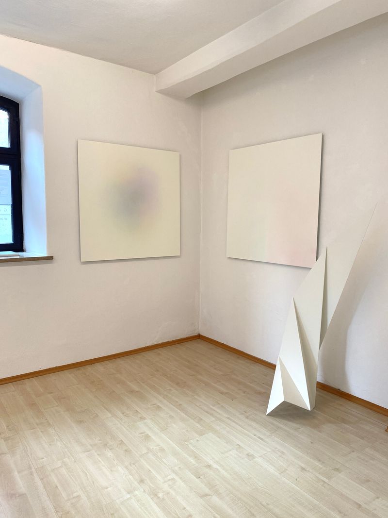 | | | | | Anlässlich der aktuellen Ausstellung WEISS SEHEN laden wir Sie ganz herzlich ein zu einem KÜNSTLERGESPRÄCH mit HANNAH A. HOVERMANN diesen Samstag, den 28.03.2026, um 15:00 Uhr. Hannah A. Hovermann wird über ihre Malerei, ihre scheinbar transluzenten Farberscheinungen und ihr spannendes Verhältnis zum Licht sprechen. Eine kleine Vorschau in ihren eigenen Worten: "Die gemalten Farberscheinungen scheinen sich zu bewegen und zu vibrieren, Farben 'verschwinden' im Auge der/des Betrachtenden und neue 'erscheinen' - es bleibt visuell unverifizierbar, ob diese Farben tatsächlich gemalt, also physisch 'da' sind oder nur erscheinen, ob sich die Augen (und das Gehirn) an diese diffusen Reize gewöhnt haben und dadurch immer mehr 'wahrnehmen' oder aber hinzu 'erfinden'." Neben Hannah A. Hovermann zeigen wir in WEISS SEHEN auch Arbeiten von Renate Krammer und Ben Muthofer. Drei sehr unterschiedliche künstlerische Positionen, die den weißen Raum als unendliches, kontrastreiches Experimentierfeld begreifen. Zwischen Stille und Spannung, Licht und Struktur, Stahl und Papier eröffnen sie alle immer wieder neue Perspektiven auf das, was Weiss alles sein kann. Einen wunderbaren Einblick in die Ausstellung gibt Isabella Kreim in ihrem BERICHT IM KULTURKANAL INGOLSTADT. Vielen Dank! Wir freuen uns auf Ihren Besuch! | | | | | | |